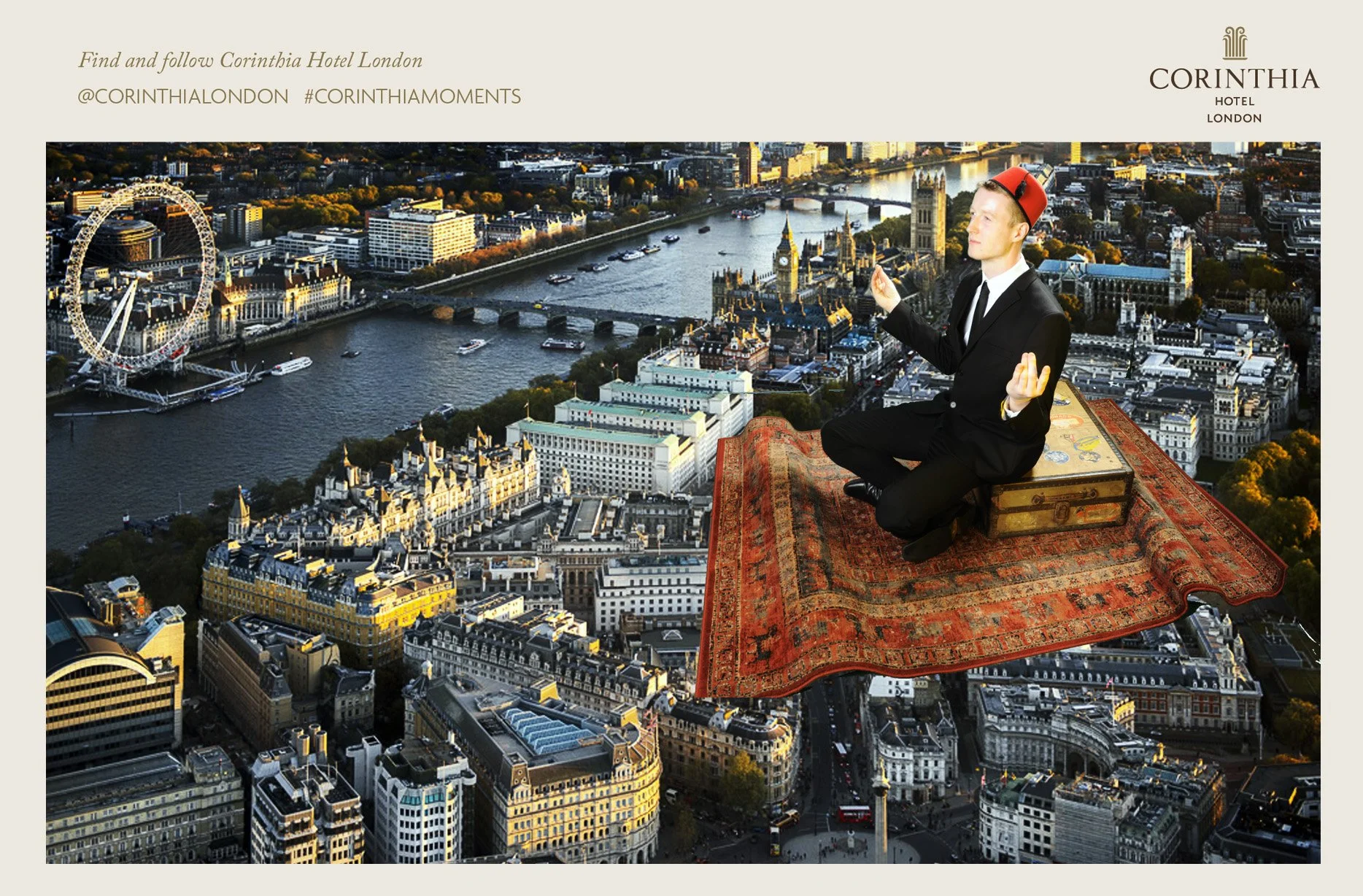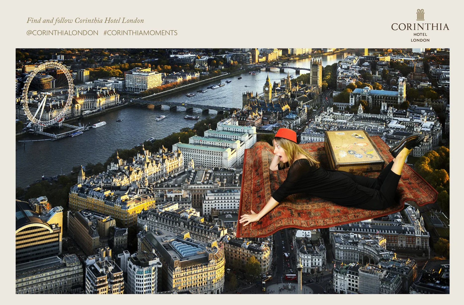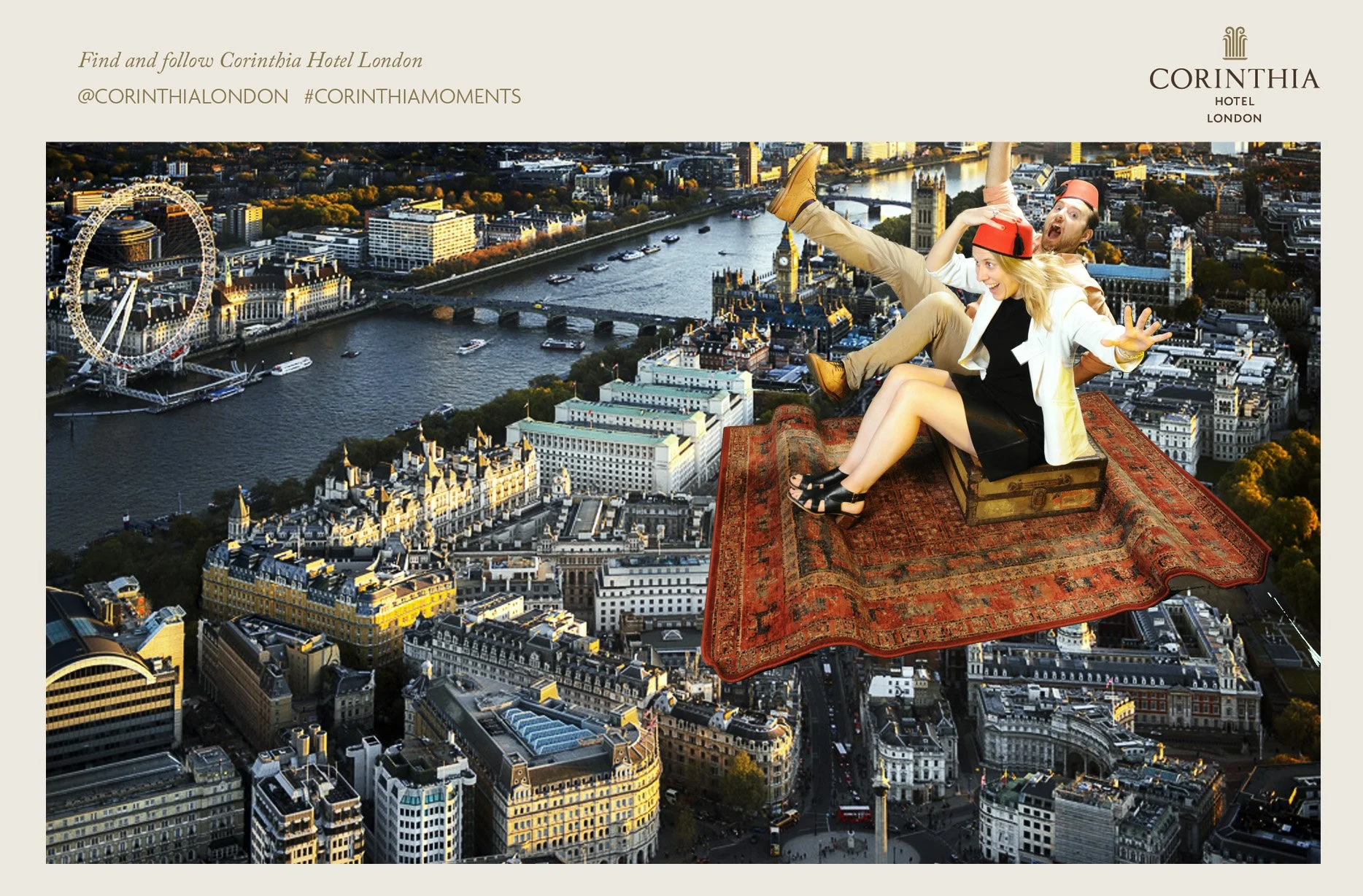 To celebrate a new season launch, the Corinthia Hotel asked us to create an interactive shoot, What better way to view such an iconic hotel than to fly over it……. courtesy of our green screen set, featuring a few essential props. Images were shared instantly to social, whilst guests also received branded prints.
