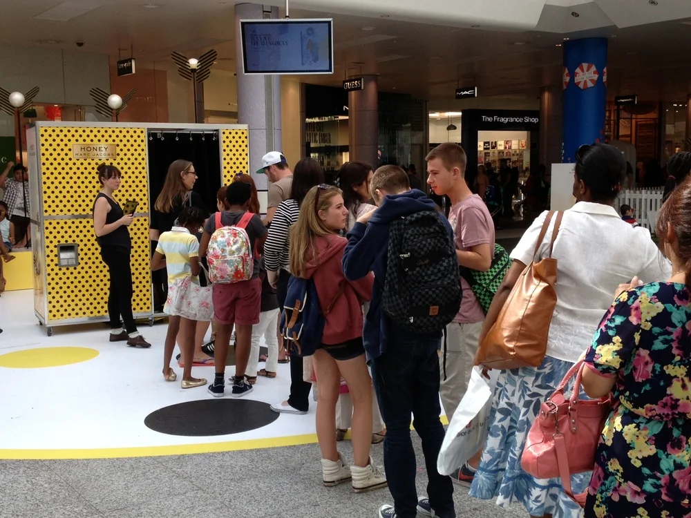 Our purpose-built Honey Booth experience came fully adorned in bumble bee black and yellow. For ten days, the integrated installation snapped thousands of eager shoppers, all of whom were given a free sample of Honey and a unique branded booth photo to cherish.